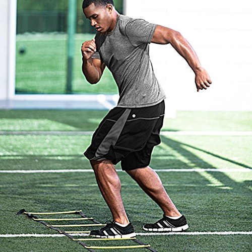 -. Feature : Material: pp (good toughness, compressive strength) with nylon, 10 plastic plate, and the distance of two plates is about 50 cm, you can freely adjust the distance between two leaves. / Full length 5,5m, 10 pieces of plastic wrap. the distance between two block is about 50 cm, a total of about 4,5 m. / Convenient to pack, easy to make. suitable for indoor and outdoor places of various conditions. / It can increase the speed of foot movement and flexibility, improve balance and coordination of the body. / The agility ladder can strengthen muscles of the foot, ankle and knee to improve the likelihood of injuries to the lower extremities are reduced the rhythm of the body movement to improve.