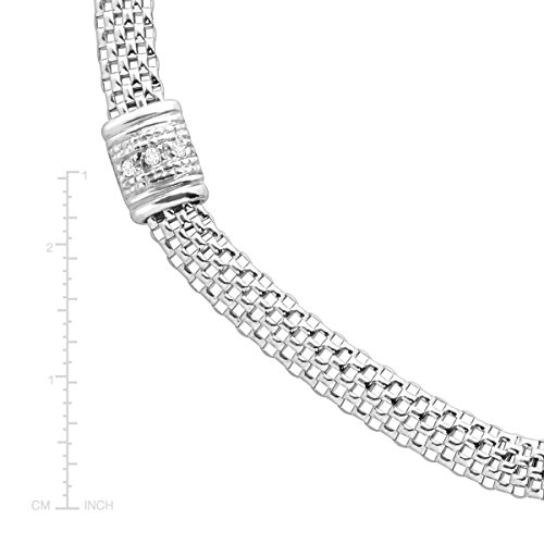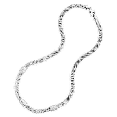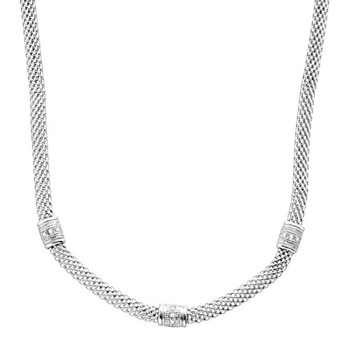 Immediately pull together any outfit with this versatile, wear-anywhere necklace. Three intricately decorated sterling silver stations are found around the body of the sterling silver mesh chain and feature a 1/10 ct diamond. Features a sterling silver 17-inch mesh chain.Feature