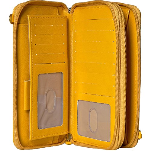 Studio : Buxton Publisher : Buxton Binding : Apparel Product Description Embossed man made material with pebbled synthetic trim and satin gold tone fashion logo/hardware nordic flight ultimate organizer® features two full zip-around compartments and an outside slip pocket. The front compartment features multiple credit card slots and i.D. Window, utility pockets, a removable checkbook with pen holder and an additional i.D. Window. The second compartment features an interior zipper pocket, multiple credit card slots and a detachable shoulder strap. 0