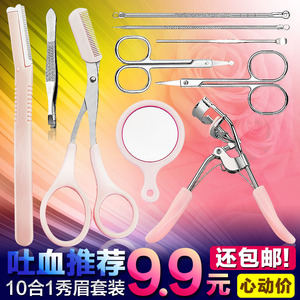 10合1修眉刀画眉神器卷翘睫毛夹修眉剪刀挤黑头针粉刺针修眉套装