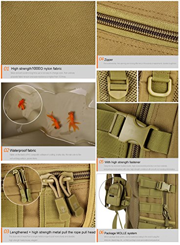 -. Title : FlyHawk 40 L Tactical Backpacks Large 3 Days Back Waterproof M0LLE Military Rucksack for Outdoor Hiking Camping Trekking Hunting