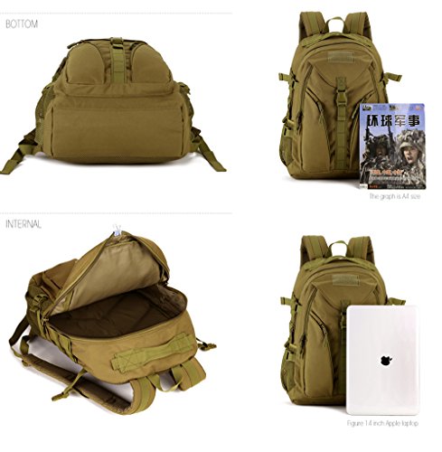 -. Feature : Tactical Assault Backpack Capacity:40L. Size approx: 19.29 * 14.17 * 7.87in.Roomy main compartment with a multi-purpose pockets for Ipad 4,Ipad Mini,A4 Magazine,15" laptop,20 pieces of T-shirts ,Wallet,Mobile Phones,cigarettes and other travel items. / Comfortable design:the rush backpack with adjustable quick-release buckle,chest slide system control design.Adjustable shoulder and height sternum strap to ensure stability and reduce shoulder stress. Padded and breathable mesh back panel offer cushioning comfort and air circulation. / Elaborated bag For Multifunctional Use: with multiple pockets and compartments design, the tactical backpack could be widely used for daily use or outdoor sport hiking camping trekking hunting. / Made of Waterproof and Wear-resistant Material: the Military Tactical Backpack is made of high -density durable nylon fabric with waterproof coating. / MOLLE System: MOLLE external expansion system designed to be used in combination with additional tactical pouches or gears, you can load pockets, water bottle bag, outdoor accessory gear,as laptop bag, bug out bag backpack, combat backpack.