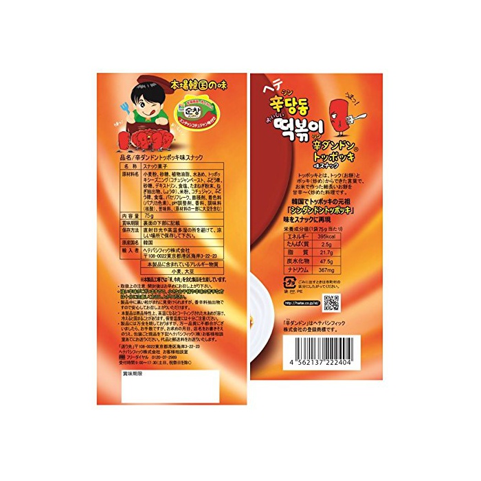 원본상품명: ヘテパシフィック 辛ダンドン トッポッキ味スナック 75g×15袋