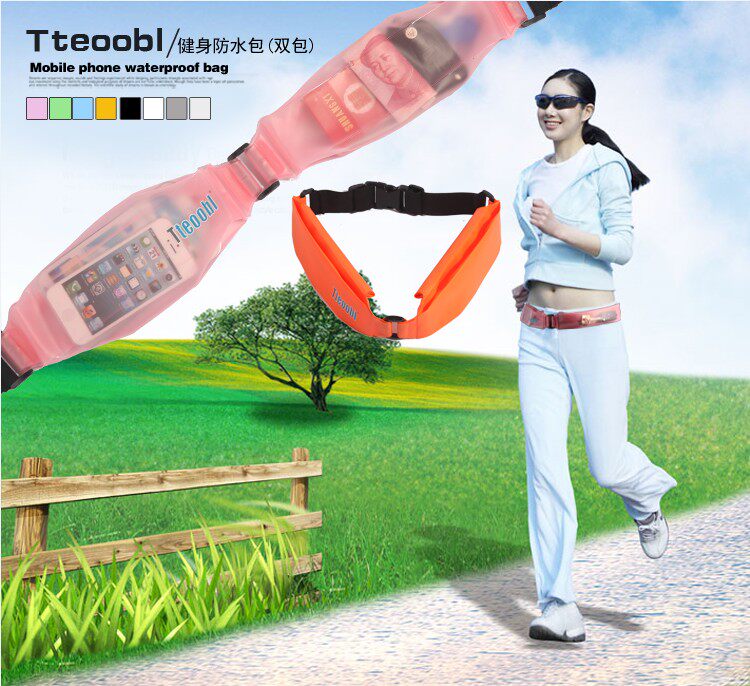 [Recommended reason] this purse, you can use a small stature, large capacity, powerful, good stability to describe the use of a maximum 5.5-inch screen can be installed under the phone, you can also install cigarettes, keys, coins, bank cards, etc., is your outdoor travel a great personal fashion weapon, whether it is family or friends are pretty good gift choice for your own use! ? [Features] high resilience fabric + ABS + PVC belt buckle + high quality waterproof plastic chain, fashionable, bright colors, travel necessary product, a person can use! ? Product parameters: Name: Fitness waterproof bag (P-909C double pack) Effective space: length 17.5CM * width 5.3CM * 5.3CM * high material thickness 0.035CM ≠ 2 Weight: 88 g (P-606C without packaging) Uses: For indoor and outdoor running, training and other fitness sportswear carry small items with waterproof and sweat. Material: high quality PVC Water depth: within 5 meters belong to a safe area,