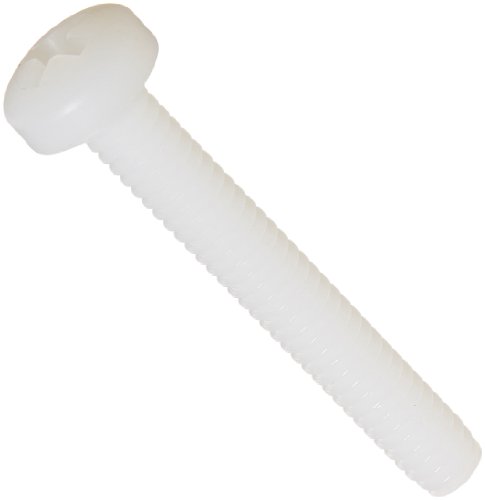 Nylon 6/6 Pan Head Machine Screw, Off-White, #3 Phillips Drive, 1/4"-20 Thread Size, 7/8" Length, Fully Threaded, USA Made (Pack of 100)