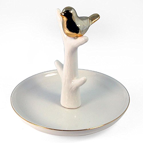 StealStreet MGE-252 Ss-Ug-Mge-252, 5" Ceramic Ring Holder with Metallic Bird Perched, Gold Color