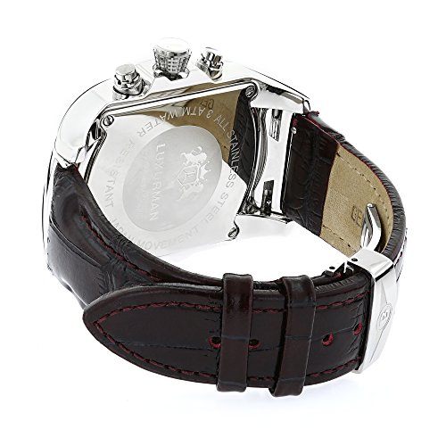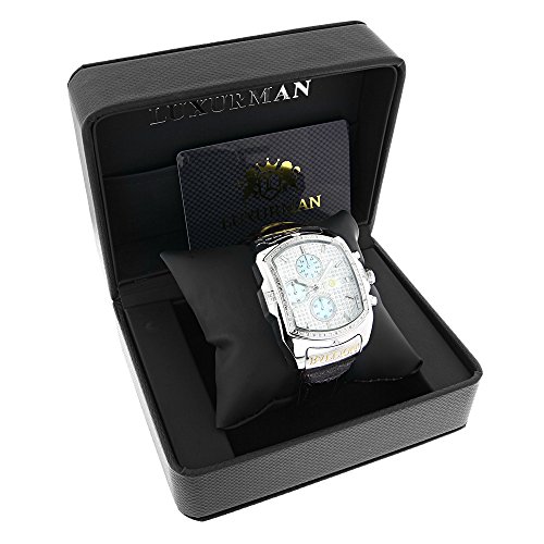 -. Title : Large Bubble Watches: LUXURMAN Bullion Diamond Watch For Men w Chronograph and Leather Band 0.18ct