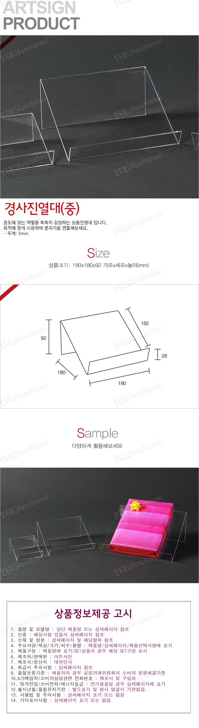 - 품명 및 모델명다용도 경사진열대(190x180x92mm)