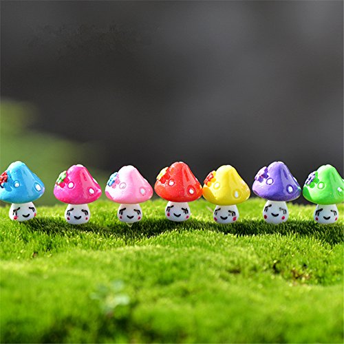 Danmu 7pcs a Set Mini Resin Smile Mushrooms Miniature Plant Pots Bonsai Craft Micro Landscape DIY Decor