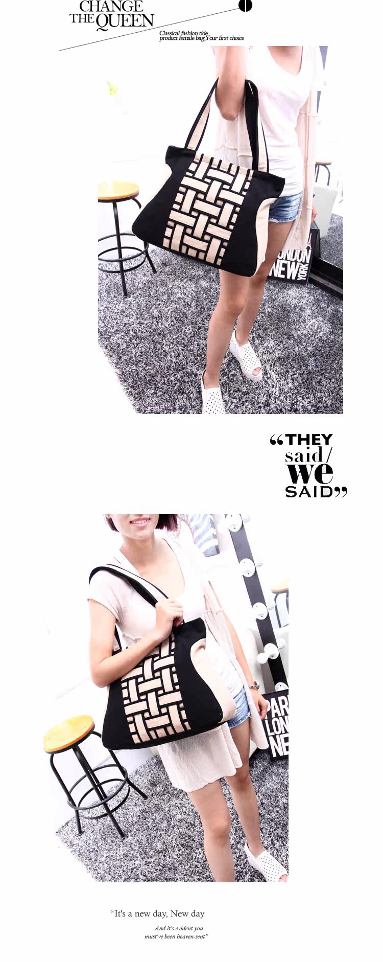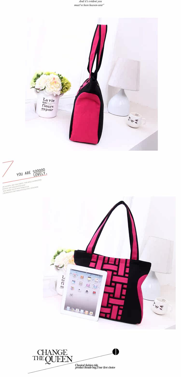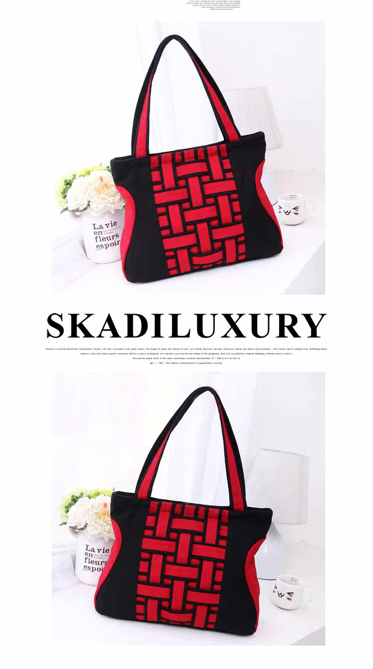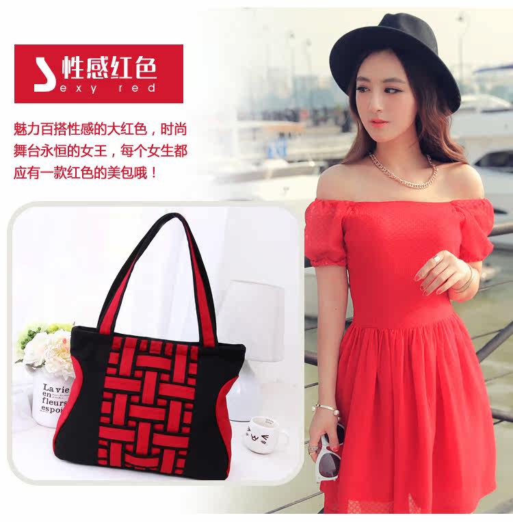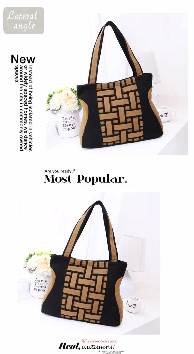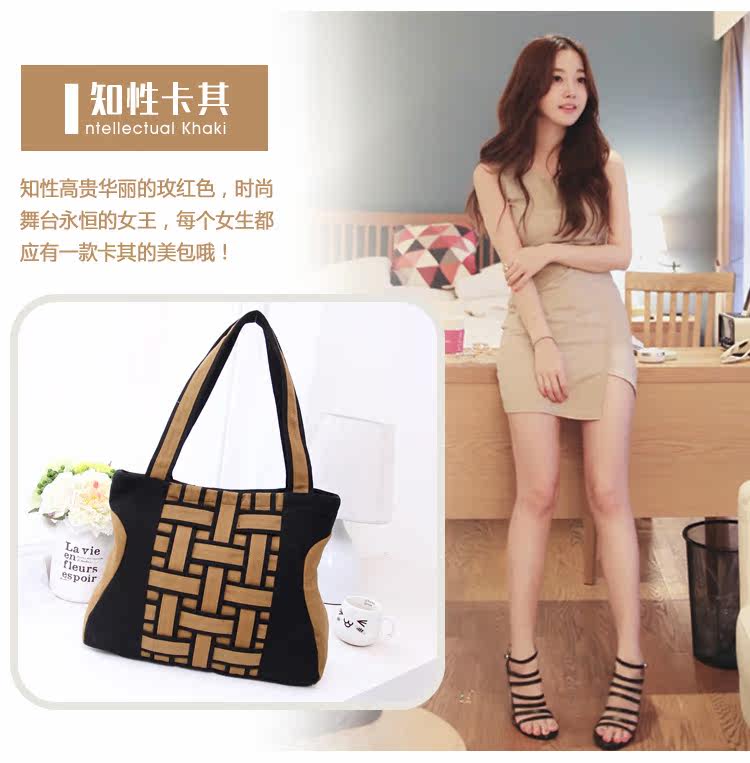 新韩版时尚方格编织手提包复古单肩斜跨女包新款2015秋冬女士大包