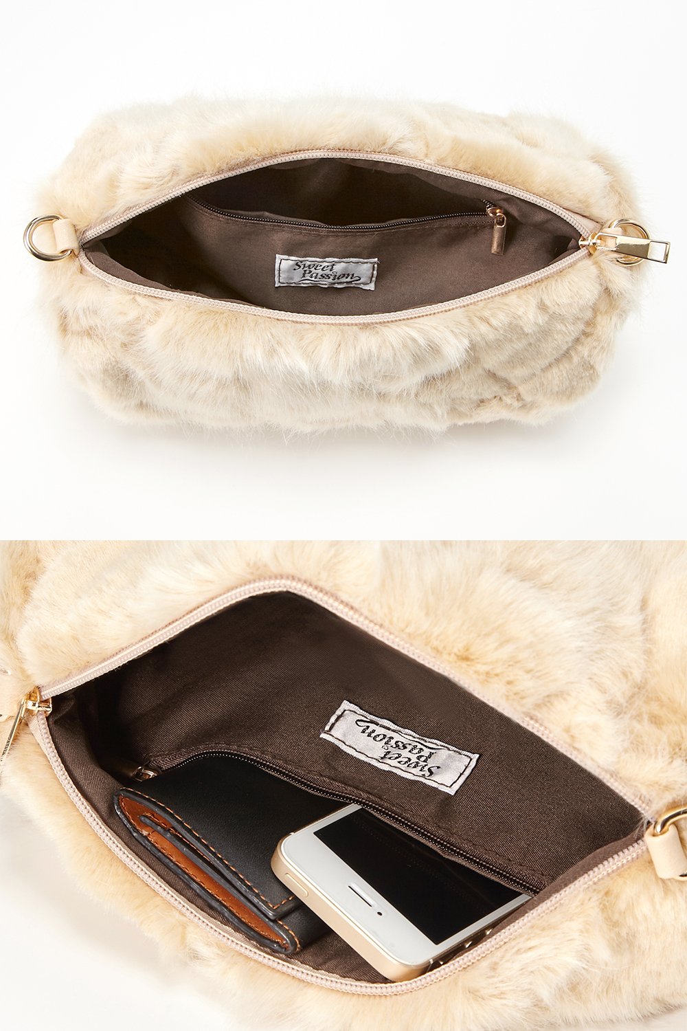 Round round shape is cute 2WAY fur shoulder bag.