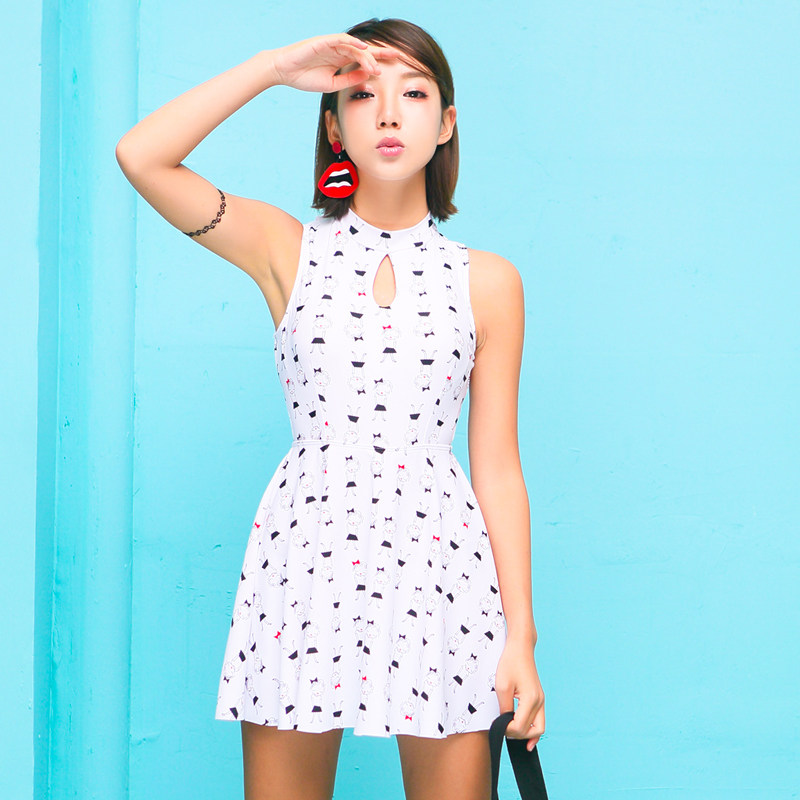 连体泳衣女保守小胸聚拢裙式温泉遮肚显瘦游泳衣高领泳装