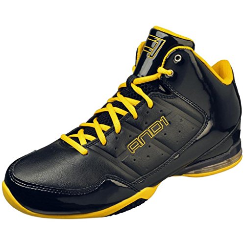 AND1 Men's Master Mid Black/Warrior Gold Mid Top Athletic Basketball Sneakers