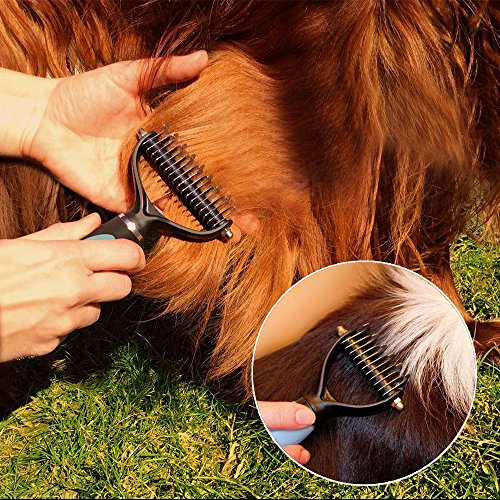 iLifeTech Pet Grooming Undercoat Rake Comb Dematting Tool 11 Teeth Wide