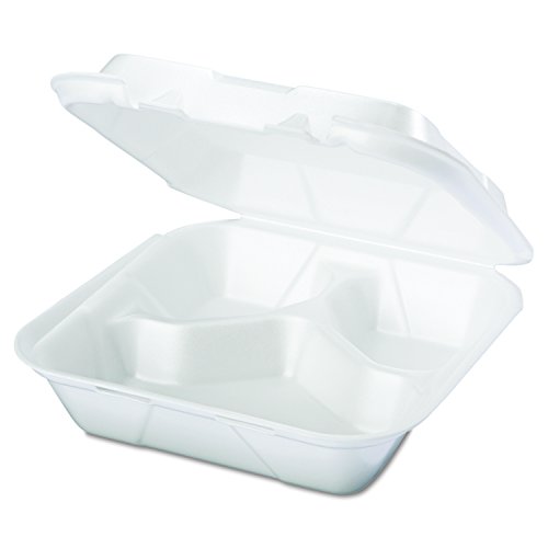 Genpak SN243 3 Medium Compartment Snap It Foam Hinged Dinner Container Lid 100-Pack (Case of 2)