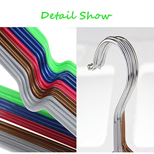 -. Feature : Material: Stainless Steel, PVC Plastic / Color: Blue/Yellow / Purple / Green / Red / Length: 42CM / 16.5'' / Package included: 5pcs X Clothes Hangers
