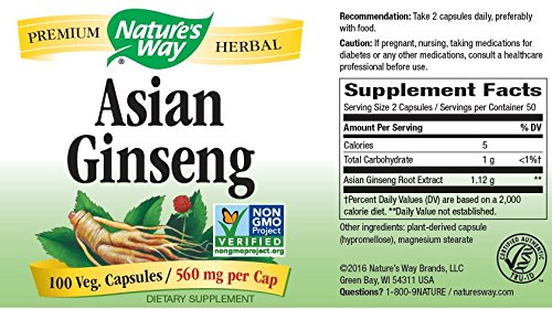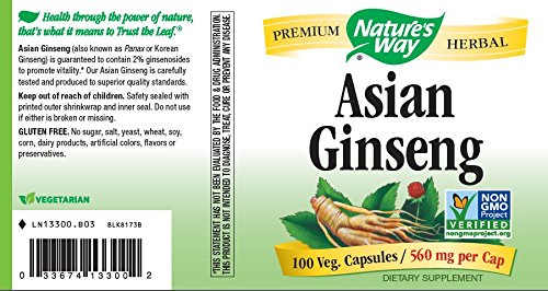 Nature's Way Ginseng, Asian, 100 Capsules, 560 mg (Packaging May Vary)