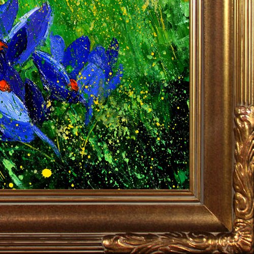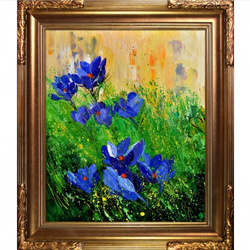 Crocuses is a canvas print of a colorful modern painting of crocuses flowers. Originally oil on canvas. Pol Ledent was born in 1952 in Belgium. He came to painting in 1989. He started with watercolor but felt rapidly that oil painting would match his way of being. He is a self-taught painter. Nevertheless he took some drawing lessons in a Belgian academy. After taking part into numerous group exhibitions, some galleries in Belgium proposed to him to exhibit his works. Dinant, Bouillon, Brussels, Paris and Moscow in October 2006. Frame Description: Florentine Gold Frame - Gold Finish.Feature