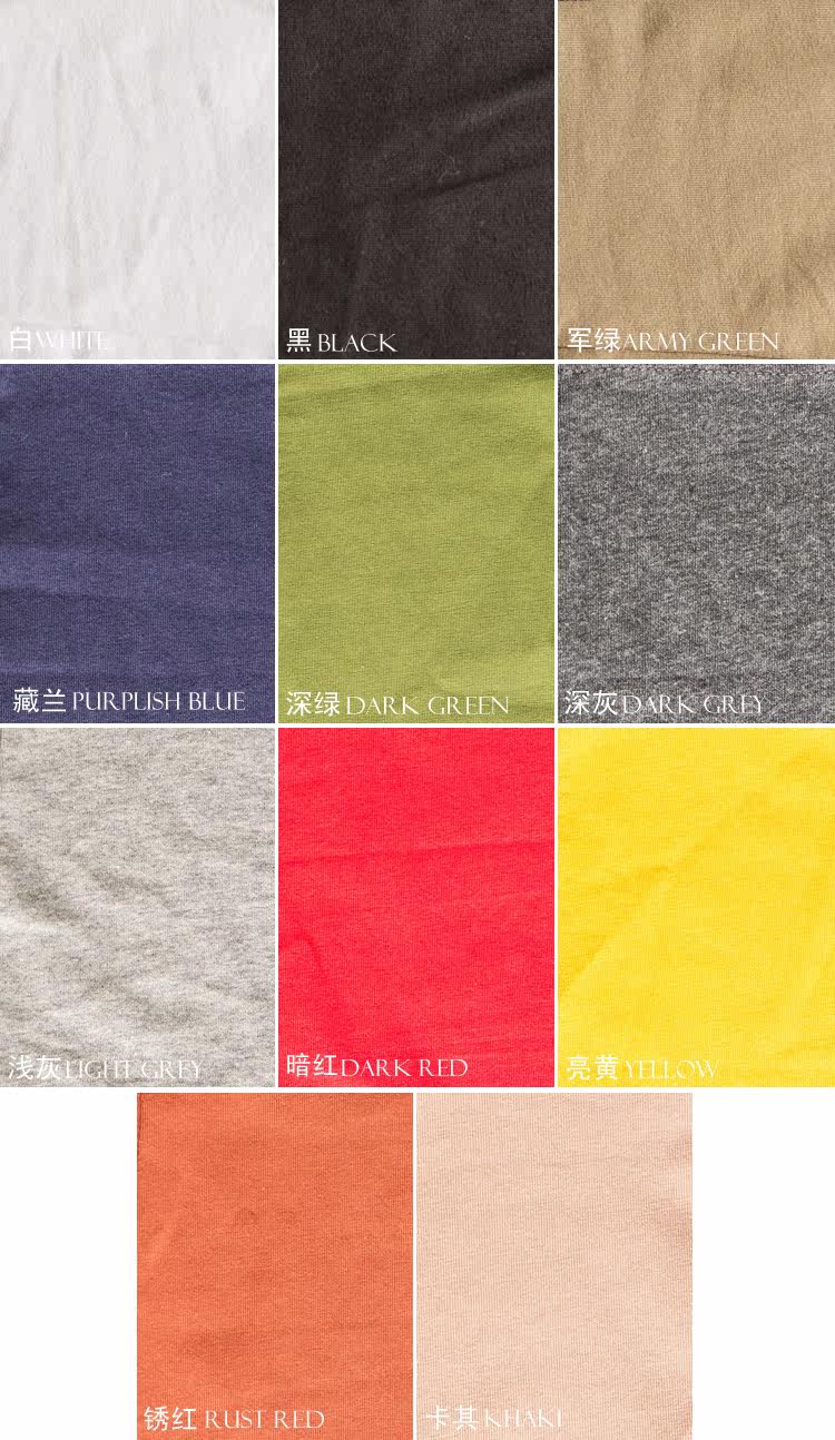 黑,白,藏兰,军绿,锈红,深灰,浅灰,深绿,亮黄,暗红,卡其 |