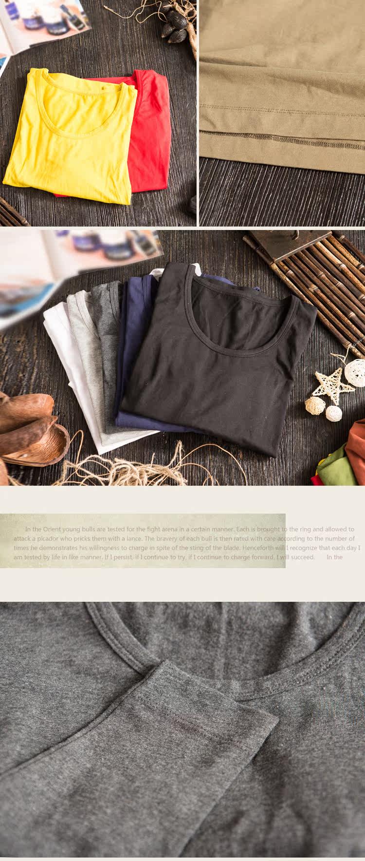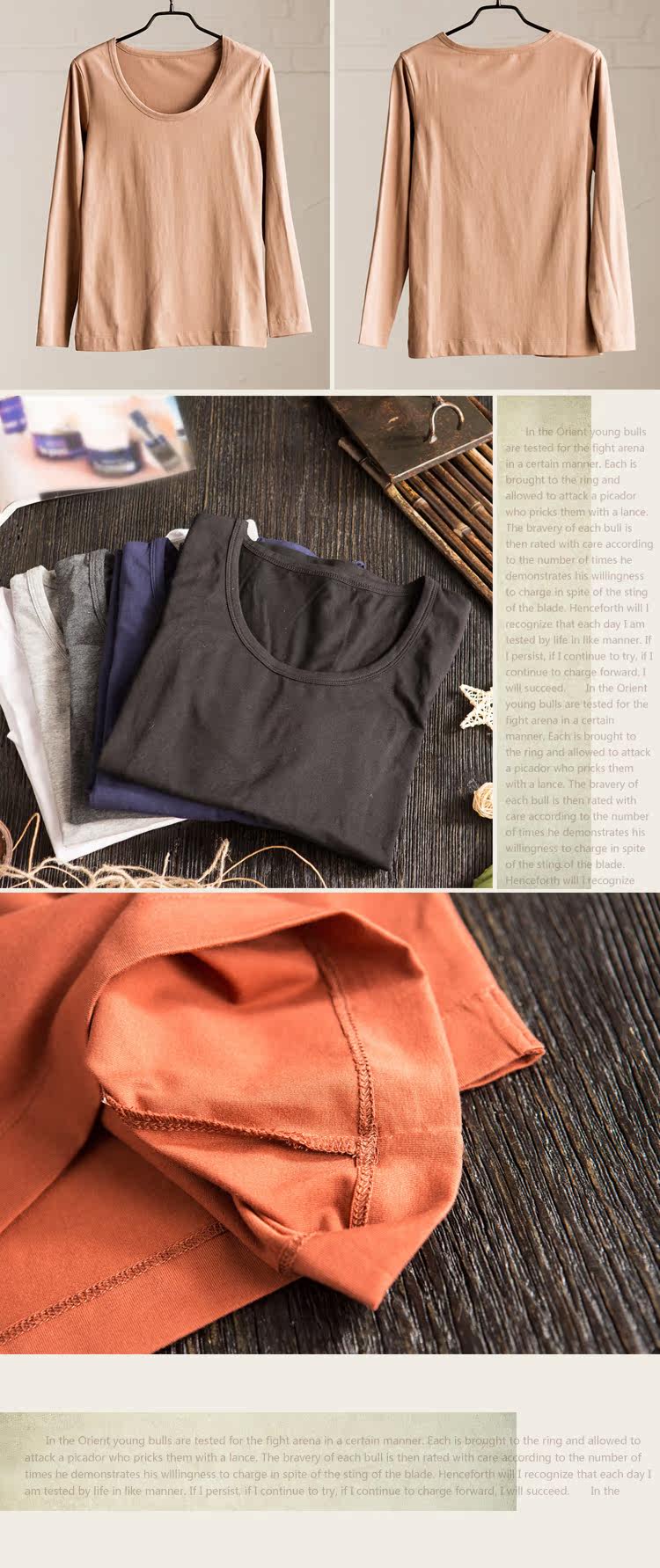 95%棉+5%氨纶,手感舒适,稍有弹力,单件重130g,厚度常规,适宜春秋穿 |