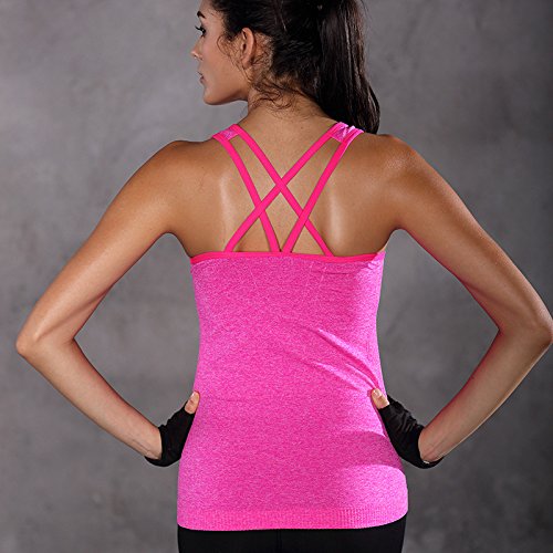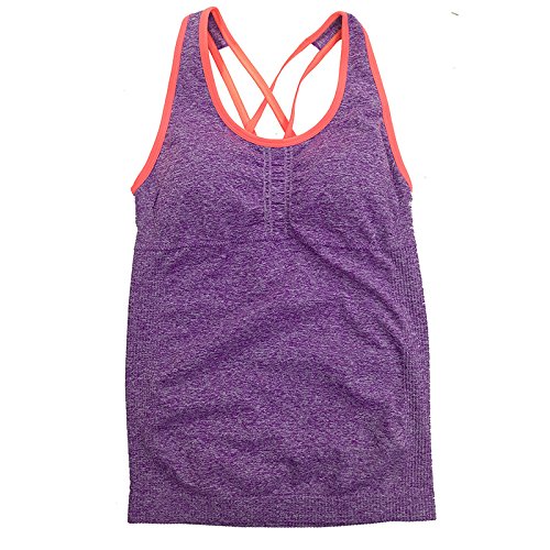 【하피쿠리】 요가 웨어 브라 톱 컵 부착 탱크 탑 네온 컬러 스트랩 빠르 건 휘트니스