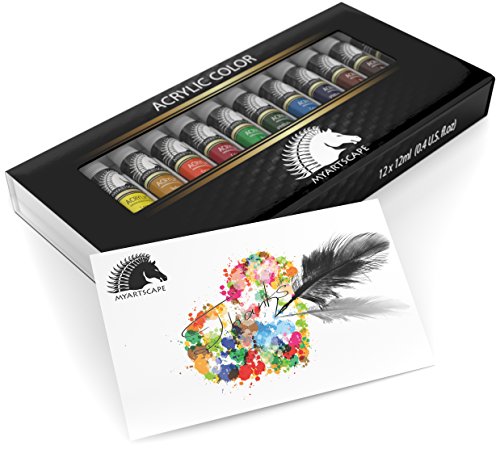 ACRYLIC ART PAINT SET - 12 x 12ml tubes of non-toxic professional artist quality paints - MyArtscape