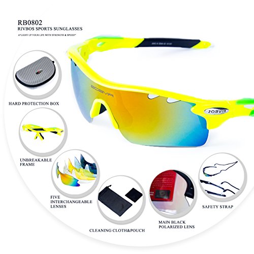 -. Title : RIVBOS 801 POLARIZED Sports Sunglasses with 5 Interchangeable Lenses Fluorescent Color