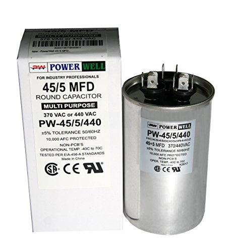 PowerWell 45+5 MFD 45/5 uf 370 or 440 Volt Dual Run Round Capacitor PW-45/5/R for Condenser Straight Cool or Heat Pump Air Conditioner