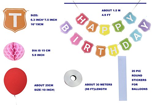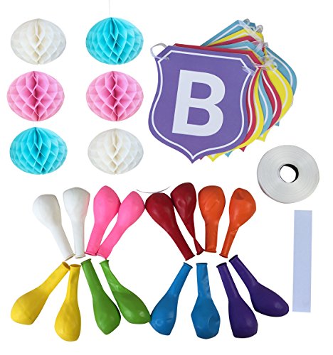 Happy Birthday Decorations Assortment Bunting Banner With Balloons&Paper Honeycomb Balls for Kids Boys Girls Birthday Party Supplies-Colorful Rainbow