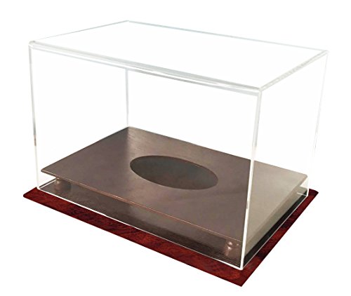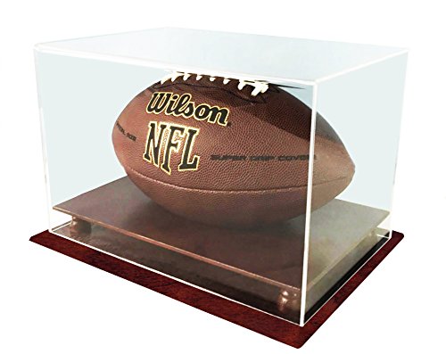 DECOMIL - UV Protection Football Display Case Holder, ALL 4 sides visible, Solid Wood Base - Cherry Finish
