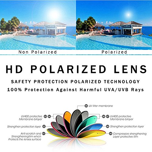 3.Polarized lens - High-definition viaual, full glare barrier, true colors, strong impact, 100% UV400 protection, durable and easy to clean.