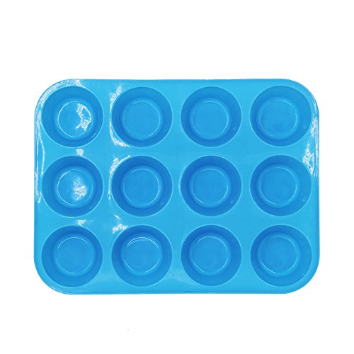 Silicone Muffin & Cupcake Baking Pan Set(12 &24 Mini Cup Sizes),Cake Mold Lollypop Cupcake Baking Mold,Non Stick,BPA Free &Dishwasher - Microwave Safe-Blue