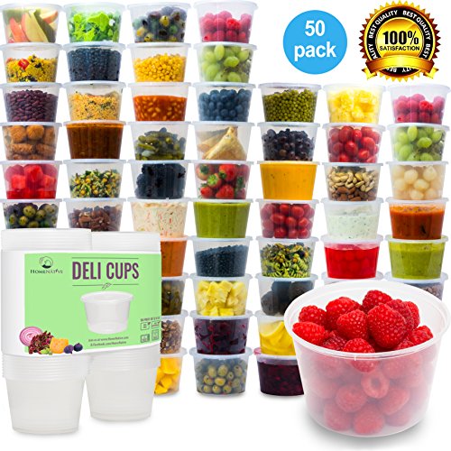 Plastic Food Storage Containers - Restaurant Deli Cups / Foodsavers for Party Supplies, Baby & Portion Control - Kids Lunch Boxes - Watertight / Leakproof Takeout Kitchen Set (15.2 oz, 50 pieces)