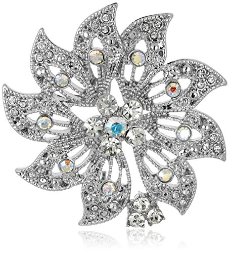Fashion that blooms from Napier. This silver plated brooch boasts glistening simulated crystals on a flower silhouette and measures 1.75 in. x 1.75 in.