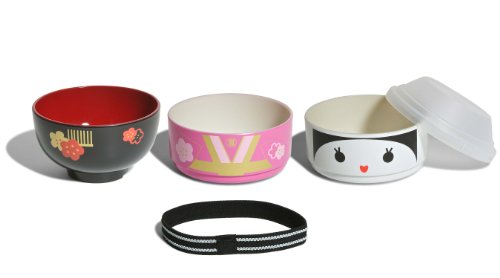 5-Piece set comes with Miso Soup Bowl (hat), covered container (head) with lid, open compartment (body) and an elastic band to hold it all in place