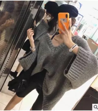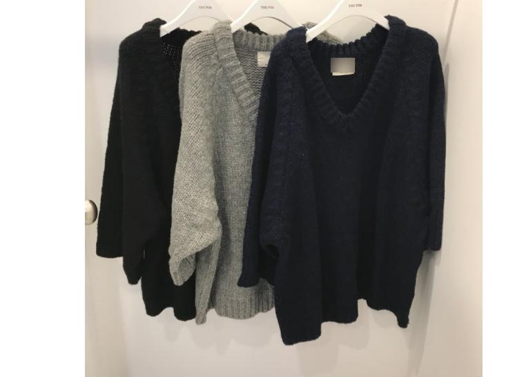 深VネックとトレンドのベルスリーブがポイントのVネックニット★