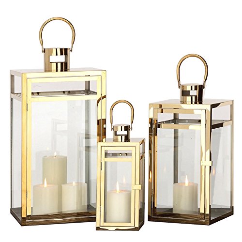 Studio : Urban Designs Publisher : Urban Designs Binding : Kitchen Product Description With a solid handle, this Brass stainless steel pillar candleholder features a hinged glass door. Glass panels expose the soft glow from this lantern candleholder in sleek, contemporary style. A chic accent for your contemporary deck or modern garden. Candles not included. 0