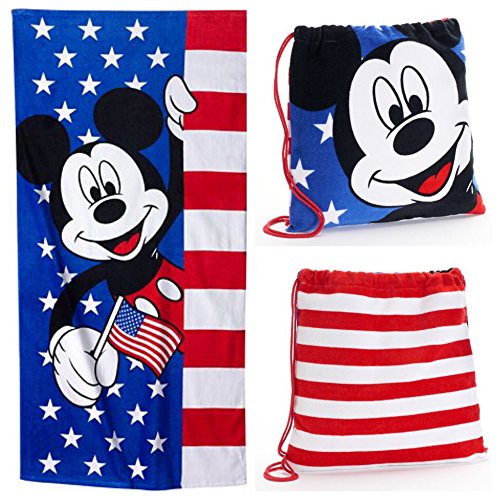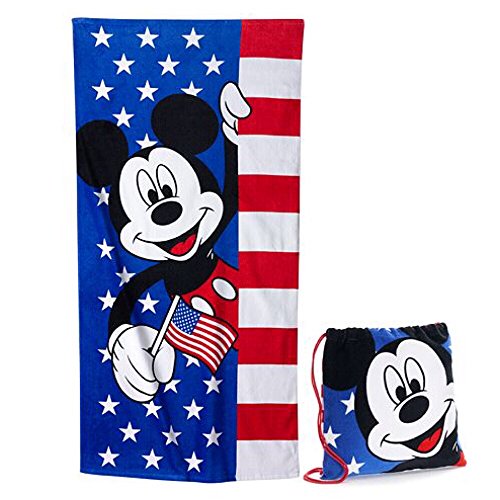 Trips to the pool or beach will be even more fun with this 2 piece Disney Mickey Mouse beach towel and tote set. The set is made of 100% cotton soft material. Designed with stars, stripes and everyone's favorite mouse. Bright colors, soft material and character design make this a kids beach towel set that they will love. Tote will hold up to 11 pounds for extra accessories. A kids outdoor set that makes a great gift for toddlers and small children. Features the Disney character Mickey Mouse. Ages 3 and up.