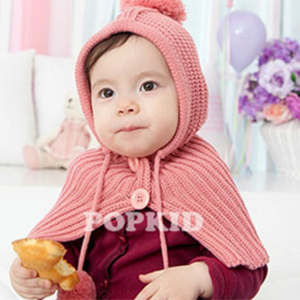 ベビー & キッズ 赤ずきんちゃん風のニット帽です♪ポンチョタイプになっているため、首から肩にかけて保護してくれます!