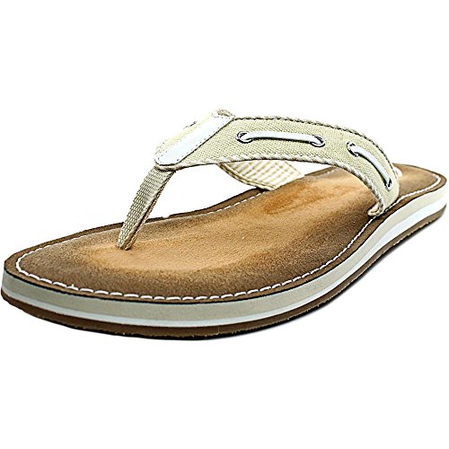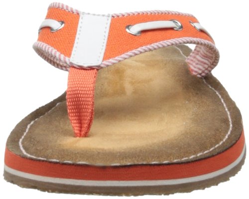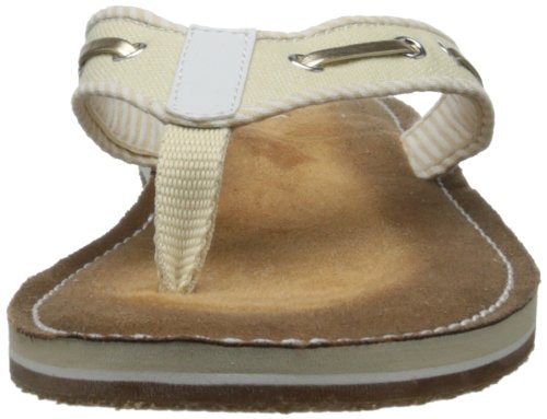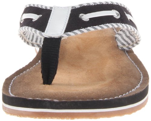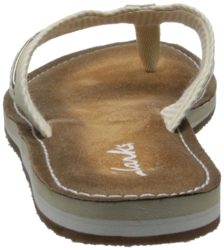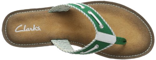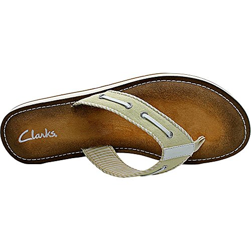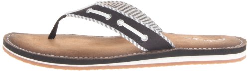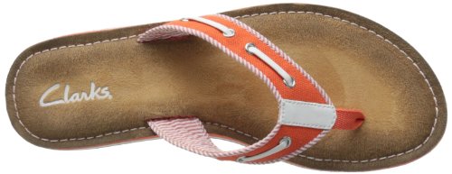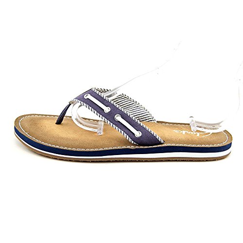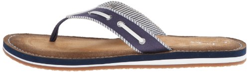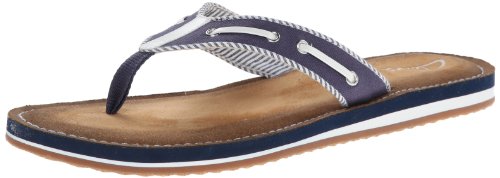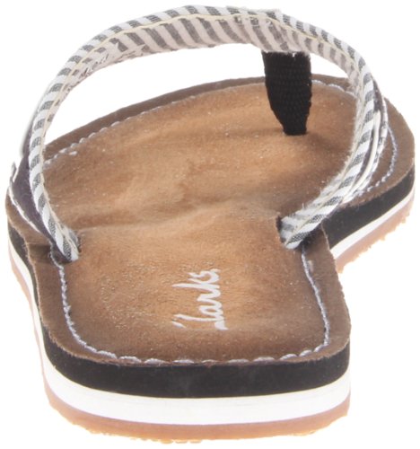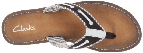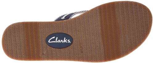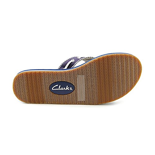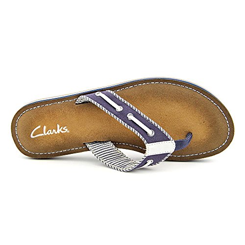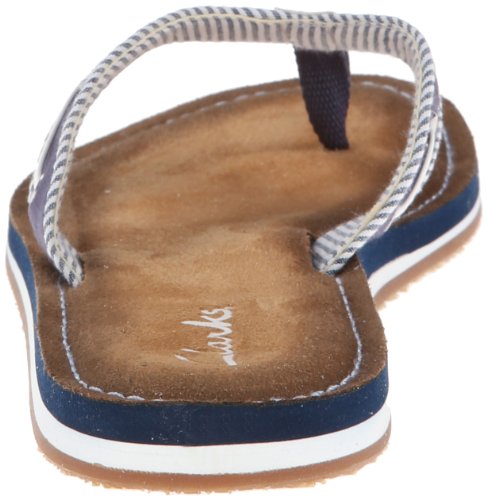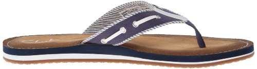Product Description Clark's Flo Cherrymore sandal in navy, is the "dock flop" you've been looking for. The sandal with the dock shoe look has a dark-to-light tan ombre footbed. The thong, foot strap portion,is navy with white lacing and white and navy stripes underneath. 0