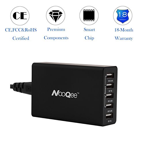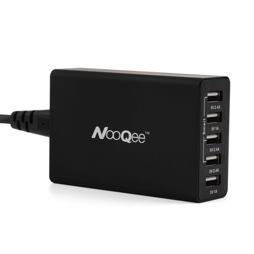 USB Charger,NooQee 36W 7.2A 5-Port Travel Charger Power Adapter Charging Station for iPhone,Samsung, iPad ,Tablet, iPod,Camera,GPS and more with Auto Detect Technology Black