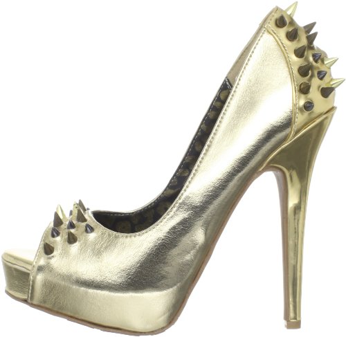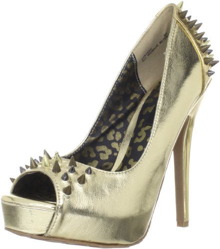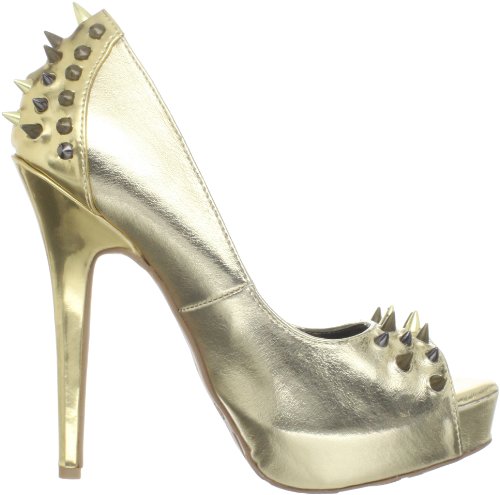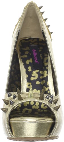 Studio : Dollhouse Publisher : Dollhouse Binding : Apparel Amazon.com You are striking, indeed, in the Striker pump from Dollhouse. This take-no-prisoners style boasts spikes at the counter and vamp for tons of attitude and an open toe that makes the most of a pedicure. A 5-inch heel and one-inch platform are on hand to boost your appeal to new heights. 0
