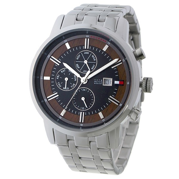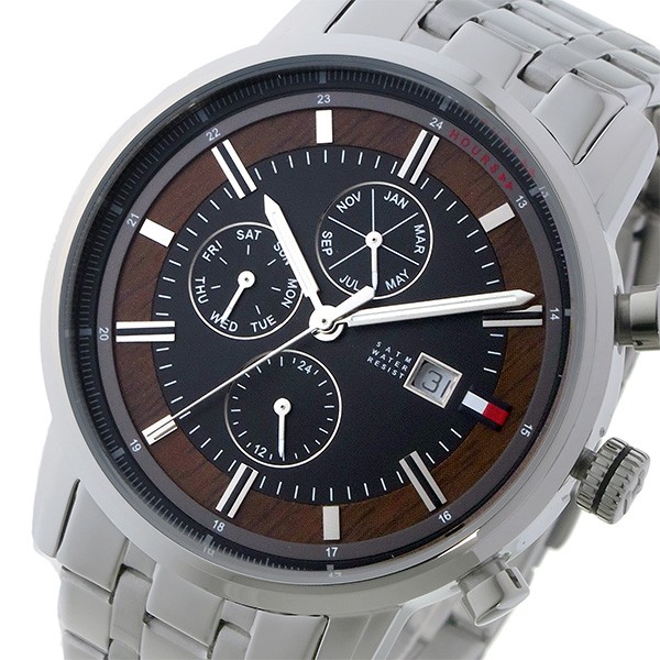 トミー ヒルフィガー TOMMY HILFIGER クオーツ メンズ ウォッチ 時計 ブラック/ウッド  商品仕様:(約)H44×W44×D13mm(ラグ、リューズは除く)、重さ(約)650g、腕周り最大(約)21cm、最小(約)14cm ステンレス(ケース)、ステンレス(ベルト) 専用BOX、保証書、取扱説明書