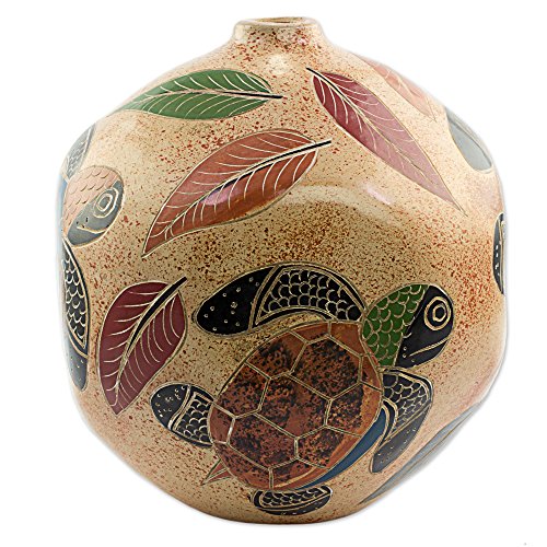 NOVICA 'Joyful Turtles' Ceramic Decorative Vase