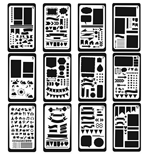 12 Pcs Bullet Journal Stencil Template Set for Drawing/Notebook/Scrapbook/Journaling and Other DIY Craft Projects Features: 1. Different designs