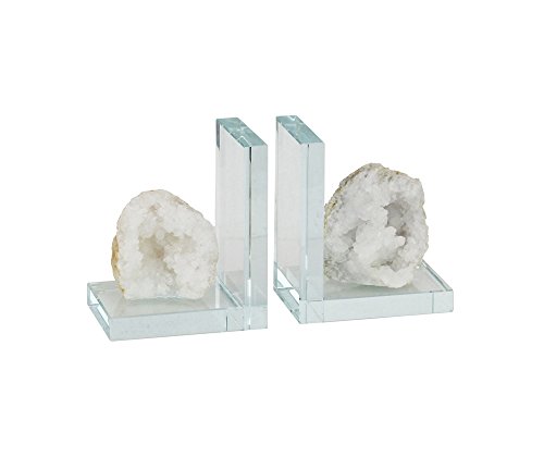 Benzara Transparent Glass with Geode Bookends, Set of Two, White