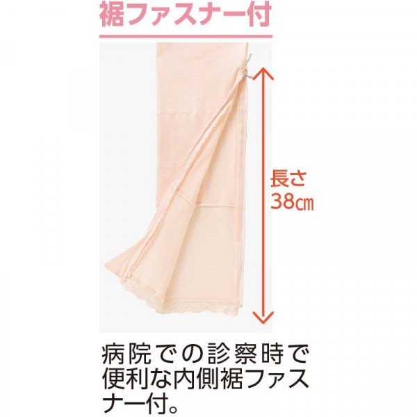 病院での診察時などでひざ出しが簡単にできる内側ファスナー付。