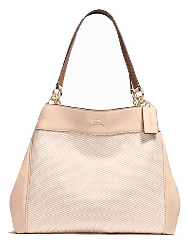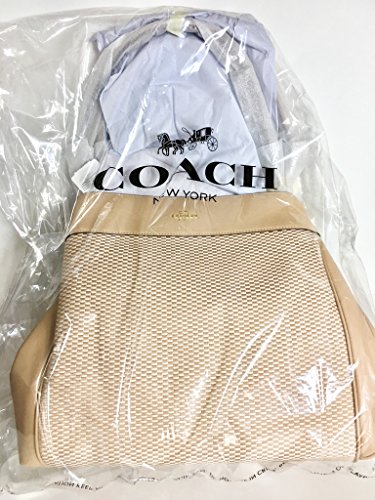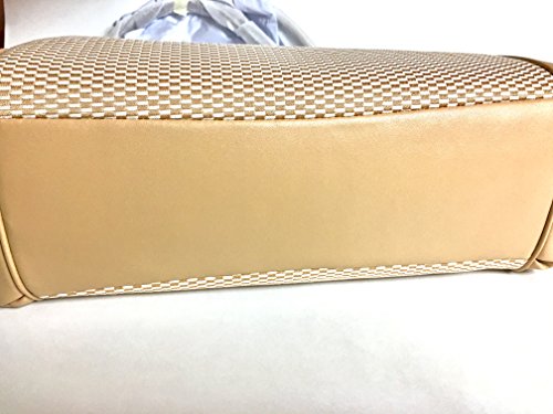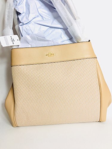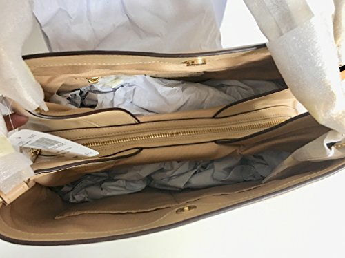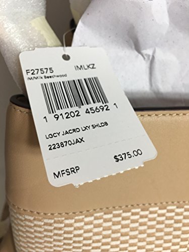 Details Legacy jacquard and smooth leather Inside zip, cell phone and multifunction pockets Center zip compartment Snap closure, fabric lining Handles with 9 1/2" drop 13" (L) x 10 3/4" (H) x 5" (W) MILK/BEECHWOOD/LIGHT GOLD