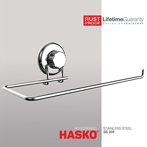 HASKO Accessories - Suction Cup Paper Towel Holder- Chrome Plated Stainless Steel Bar for Bathroom & Kitchen (Chrome)