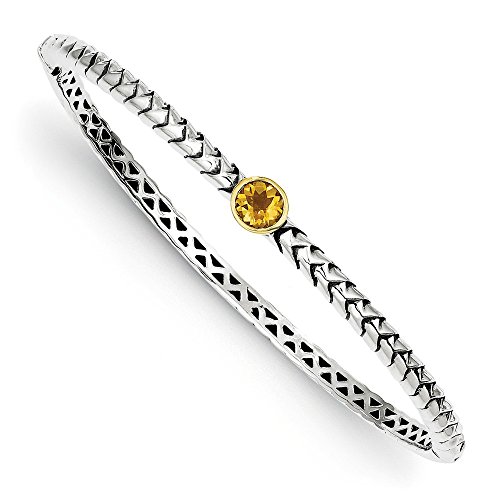 -. Title : Sterling Silver w/14k 6mm Citrine Hinged Bangle Bracelet - Shey Couture